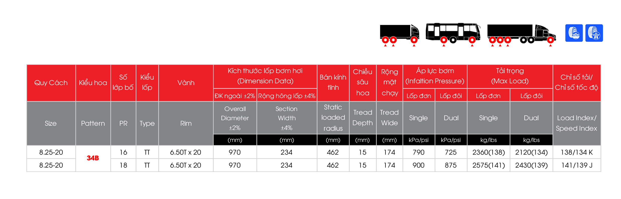 | QUY CÁCH | 8.25-20, 8.25-20 |